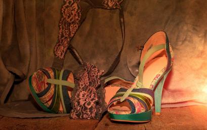 Keywords: shoes high heels underwear wooden bed blanket lighting