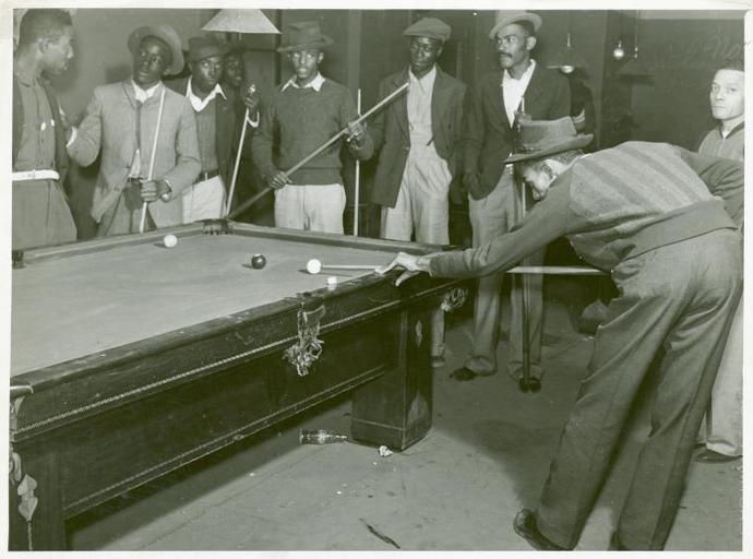 | Keywords: new york public library newyorkpubliclibrary dc:identifier=http://digitalgallery.nypl.org/nypldigital/id?1260039 dc:identifier=httpdigitalgallerynyplorgnypldigitalid1260039 xmlns:dc=http://purl.org/dc/elements/1.1/ xmlns:dc=httppurlorgdcelements11 dc:coverage=1939 clarksdale miss. miss african american men africanamericanmen billiard players billiardplayers mississippi depression era depressionera indoor Digital ID: 1260039. Shooting pool on Saturday afternoon, Clarksdale, Mississippi Delta November 1939.. Wolcott, Marion Post -- Photographer. November 1939 Notes: Original negative #: 52481-D; Schomburg copy negative #: SC-CN-00-037 Source: Farm Security Administration Collection. / Mississippi. / Marion Post Wolcott. (more info) Repository: The New York Public Library. Schomburg Center for Research in Black Culture. Photographs and Prints Division. See more information about this image and others at NYPL Digital Gallery. Persistent URL: digitalgallery.nypl.org/nypldigital/id?1260039 Rights Info: No known copyright restrictions; may be subject to third party rights (for more information, click here) Digital ID: 1260039. Shooting pool on Saturday afternoon, Clarksdale, Mississippi Delta November 1939.. Wolcott, Marion Post -- Photographer. November 1939 Notes: Original negative #: 52481-D; Schomburg copy negative #: SC-CN-00-037 Source: Farm Security Administration Collection. / Mississippi. / Marion Post Wolcott. (more info) Repository: The New York Public Library. Schomburg Center for Research in Black Culture. Photographs and Prints Division. See more information about this image and others at NYPL Digital Gallery. Persistent URL: digitalgallery.nypl.org/nypldigital/id?1260039 Rights Info: No known copyright restrictions; may be subject to third party rights (for more information, click here) Digital ID: 1260039. Shooting pool on Saturday afternoon, Clarksdale, Mississippi Delta November 1939.. Wolcott, Marion Post -- Photographer. November 1939