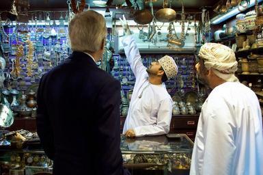 | Keywords: Shopkeeper Points to Wares as Secretary Kerry Pays Visit to Muttrah Souk in Oman.jpg en A shopkeeper points to his hanging wares as U S Secretary of State John Kerry visits the Muttrah Souk - a traditional bazaar - in Muscat Oman on November 10 2014 during a break in P5+1 negotiations with Iran about the future of its nuclear program State Department photo/ Public Domain 2014-11-10 08 32 47 http //www flickr com/photos/9364837 N06/15137896394/ U S Department of State other versions 23 617531 58 583439 PD-USGov PD-USGov Bilateral relations of the United States Uploaded with UploadWizard Muttrah souq |