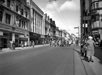 | Keywords: newcastle upon tyne newcastleupontyne 1960s northumberland street northumberlandstreet shopping boots chemists bootschemists blackandwhite road monochrome architecture outdoor black and white View of Northumberland Street, Newcastle upon Tyne, May 1961 (TWAM ref. DT.TUR/26647L). You can also see an aerial view of Northumberland Street dating from 1948 here www.flickr.com/photos/twm_news/15345407391/. Tyne & Wear Archives presents a series of images taken by the Newcastle-based photographers Turners Ltd. The firm had an excellent reputation and was regularly commissioned by local businesses to take photographs of their products and their premises. Turners also sometimes took aerial and street views on their own account and many of those images have survived, giving us a fascinating glimpse of life in the North East of England in the second half of the Twentieth Century. (Copyright) We're happy for you to share these digital images within the spirit of The Commons. Please cite 'Tyne & Wear Archives & Museums' when reusing. Certain restrictions on high quality reproductions and commercial use of the original physical version apply though; if you're unsure please email archives@twmuseums.org.uk View of Northumberland Street, Newcastle upon Tyne, May 1961 (TWAM ref. DT.TUR/26647L). You can also see an aerial view of Northumberland Street dating from 1948 here www.flickr.com/photos/twm_news/15345407391/. Tyne & Wear Archives presents a series of images taken by the Newcastle-based photographers Turners Ltd. The firm had an excellent reputation and was regularly commissioned by local businesses to take photographs of their products and their premises. Turners also sometimes took aerial and street views on their own account and many of those images have survived, giving us a fascinating glimpse of life in the North East of England in the second half of the Twentieth Century. (Copyright) We're happy for you to share these digital images within the spirit of The Commons. Please cite 'Tyne & Wear Archives & Museums' when reusing. Certain restrictions on high quality reproductions and commercial use of the original physical version apply though; if you're unsure please email archives@twmuseums.org.uk |