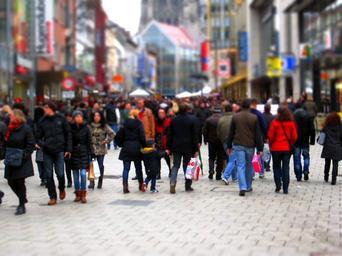 Keywords: shopping shopping street fray pedestrian zone christmas time city downtown shops people crowd out of focus