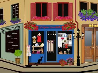 Keywords: shopping shops store black cat flowers showcases facades pharmacy hotel lingerie underwear ladies women screen corset cabinet hanging flowers potted tree flowers in pots