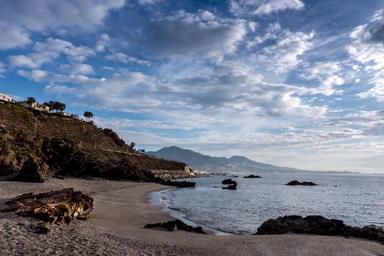 Keywords: shore beach dawn lighthouse mijas mijas malaga spain costa walk nature sea holiday edge of the sea horizon afternoon output del sol