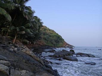 Keywords: shore sea arabian ocean seascape coastline wave rocks palms coconut scenic tropical shoreline gokarna india