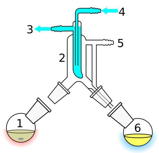 Keywords: Short path distillation apparatus.svg <nowiki> </nowiki> Still pot with stirrer bar/anti-bumping granules Cold finger - bent to direct condensate Cooling water out cooling water in Vacuum/gas inlet Distillate flask/Distillate <br> Note As the condenser cold finger is not in the distillation path less product is lost as a film on the condenser surface <br> <nowiki> </nowiki> Vorlage mit Rührfisch / Siedesteinchen Kühlfalle - gewinkelt zur Ableitung des Kondensats Kühlwasserabfluß Kühlwasserzufluß Vakuumstutzen Destillatvorlage Short path distillation apparatus http //en wikipedia org/wiki/distillation 2006-10-27 Original PNG by User Quantockgoblin SVG adaptation by User Slashme Own work all rights released public domain left 65px svg version based on png version by Quantockgoblin Created with Inkscape Laboratory distillation apparatus Vacuum distillation Condensers chemistry laboratory equipment |