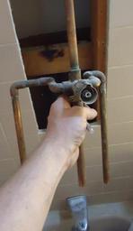 | Keywords: Shower project old diverter valve with pipes removed.jpg en A handyman project to redo pipes behind the shower Here the water was shut off pipes were cut and the old diverter valve assembly is being removed 2012-08-16 own Tomwsulcer cc-zero Uploaded with UploadWizard Handyman photos by tom sulcer Plumbing |