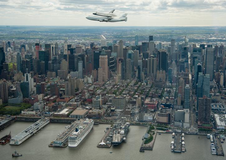 Keywords: Shuttle Enterprise Flight to New York (201204270023HQ) DVIDS722891.jpg en Space shuttle Enterprise mounted atop a NASA 747 Shuttle Carrier Aircraft SCA is seen as it flies near the Intrepid Sea Air and Space Museum Friday April 27 2012 in New York Enterprise was the first shuttle orbiter built for NASA performing test flights in the atmosphere and was incapable of spaceflight Originally housed at the Smithsonian's Steven F Udvar-Hazy Center Enterprise will be demated from the SCA and placed on a barge that will eventually be moved by tugboat up the Hudson River to the Intrepid Sea Air Space Museum in June Photo Credit NASA/Robert Markowitz NASA Identifier nasahqphoto-6973294496 2012-06-12 Glenn Research Center https //www dvidshub net/image/722891 722891 2012-10-15 17 09 WASHINGTON DC US PD-USGov Intrepid Sea-Air-Space Museum Images from DoD uploaded by Fæ |