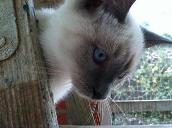 Keywords: siamese kitten cat blue eyes blue outdoors face portrait nature domestic cute pet young feline little kitty softness staring whisker curious eyes