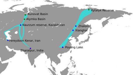 | Keywords: SiberianCrane.svg Siberian Crane migration routes based on http //www scwp info/documents/Siberian_Crane_Western_Central_Flyway pdf http //www scwp info/documents/Siberian_Crane_Eastern_Flyway pdf own 2011 Shyamal Grus leucogeranus Gruiformes distribution maps |