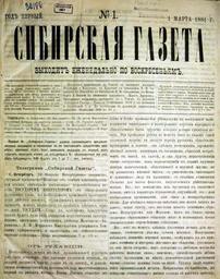 | Keywords: Sibirskaya gazeta.jpg en Sibirskaya gazeta - 1st page of 1st issue ru Сиби ская газета пе вая ст аница пе вого выпуска 1881-03-01 sun tsu ru/mminfo/000351029/1881/1 1 march djvu Sibirskaya gazeta PD-old-100 Uploaded with UploadWizard History of Tomsk Newspapers of Russia 1881 Newspaper front pages Media of Tomsk Newspapers of Russia to be categorised by name |