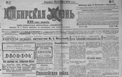 Keywords: Sibirskaya gizn.jpg ru Газета Сиби ская жизнь Издавалась в Томске И кутская го одская библиотека Редакция газеты Сиби ская жизнь 1915-03-31 PD-Old Sibirskaya zhizn 1915 31 March Media of Tomsk
