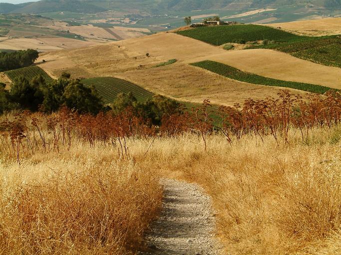 Keywords: sicily hills countryside path fields italy land meadow country summer rural