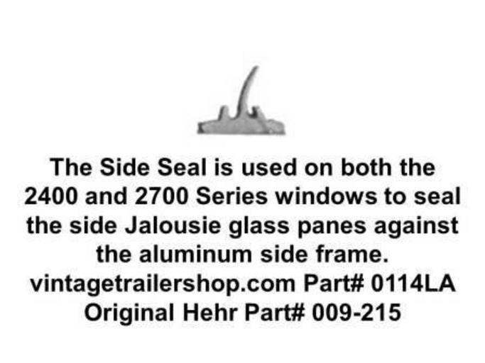 Keywords: This Side Seal (also known as a T seal) provides a seal between the glass louvers and the side of the aluminum frame. vintagetrailershop.com Part# 0114LA Original Hehr Part# 009-215
