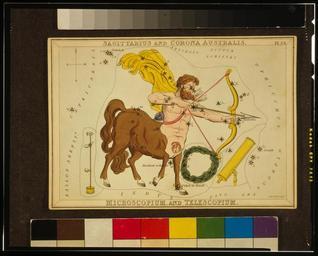 | Keywords: Sidney Hall - Urania's Mirror - Sagittarius and Corona Australis, Microscopium, and Telescopium - original.tif File Sidney Hall - Urania's Mirror - Sagittarius and Corona Australis Microscopium and Telescopium jpg Sagittarius and Corona Australis Microscopium and Telescopium plate 24 in Urania's Mirror a set of celestial cards accompanied by A familiar treatise on astronomy by Jehoshaphat Aspin London Astronomical chart 1 print on layered paper board etching hand-colored LOC-image cph 3g10070 1825 Creator Sidney Hall Richard Rouse Bloxam 1765-1840 Restoration by Adam Cuerden File Sidney Hall - Urania's Mirror - Sagittarius and Corona Australis Microscopium and Telescopium jpg - Restoration JPEG File Sidney Hall - Urania's Mirror - Sagittarius and Corona Australis Microscopium and Telescopium png - Restoration PNG File Sidney Hall - Urania's Mirror - Sagittarius and Corona Australis Microscopium and Telescopium - original tif - Original TIFF The restorationist Adam Cuerden requests attribution PD-old-100 Sagittarius Corona Australis Microscopium Telescopium Urania's Mirror |