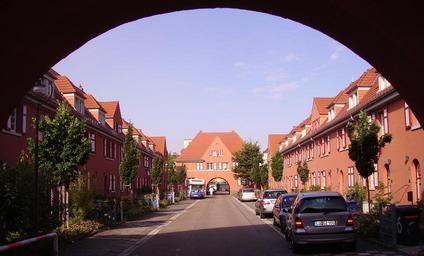 Keywords: Siedlung Ludwigshafen Gartenstadt 03.JPG en Ludwigshafen-Gartenstadt Own Immanuel Giel 2008-06 Roter Hof Ludwigshafen am Rhein