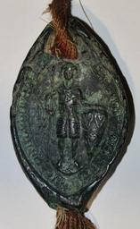 | Keywords: Siegel Grafen zu Brehna 1226.JPG de Siegel an einer Urkunde Die Grafen von Brehna Dietrich I und Otto II bestätigen dem Kloser Dobrilugk eine Anzahl Güter die es von deren Vater Friedrich II v Brehna und von anderen Vorfahren oder Lehnsleuten erworben hat Urkunde wurde 1226 in Löben ausgestellt Photo own Object Ausstellung 2011 in Doberlug-KirchhainBrandenburgisches Landesarchiv 1226 Photo LutzBruno PD-old-100 thumb Images by LutzBruno History of Saxony History of Saxony-Anhalt Kloster Dobrilugk Löben Annaburg Seals of medieval Germany 1226 seals QualityImage |
