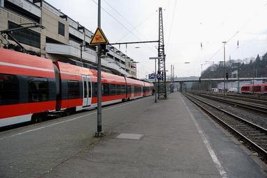 Keywords: 50 53N 8 01E Siegen station is the main station of the town of Siegen, in the German state of North Rhine-Westphalia. Opened 10 January 1861.