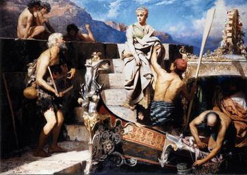 | Keywords: Siemiradzki Begging castaway.jpg Artwork Creator Henryk Siemiradzki 1878 oil on canvas cm 208 293 5 object history credit line accession number http //wyborcza pl/1 75248 15035897 _Rozbitek__Siemiradzkiego_sprzedany___To_wielka_strata html PD-old-100 See also <gallery> File Żebrak szkic jpg Szkic olejny do obrazu </gallery> Ancient Roman historical paintings by Henryk Siemiradzki 1878 oil on canvas paintings People with boats in art Location of museum or gallery missing | ||||