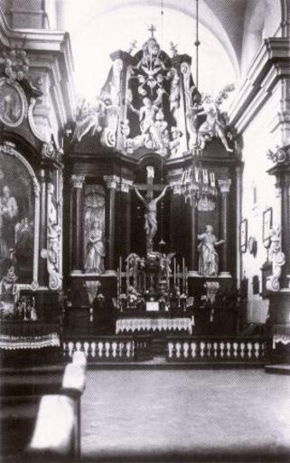 | Keywords: Siennica - baroque altar.jpg Interior of the Reformed Franciscan Church in Siennica The church together with adjacent monastery and baroque furnishings was established between 1749-1760 by the Rudziński family <ref name pogorzel > pl icon cite web http //www pogorzel com pl/index php option com_content view article id 122 Itemid 122 Historia Siennicy www pogorzel com pl 2010-05-23 </ref> The interior was destroyed by artillery fire during the Battle of Siennica in 1944 between German and Soviet forces <ref name pogorzel /> http //www pogorzel com pl/images/stories/oltarz_siennica jpg www pogorzel com pl < 1939 Author PD-old Notes Reflist Baroque altars destroyed in Poland during World War II Franciscan Monastery in Siennica |