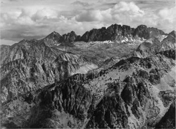 Keywords: sierra nevada landscape nature snow caped mountains california park sky clouds beautiful outside outdoor valley ravine gorge black and white