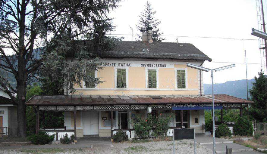 Keywords: Sigmundskron Ponte d'Adige Railway Station.jpg 46 485623 11 297513 it Stazione ferroviaria di Ponte d'Adige BZ Alto Adige Italia Ferrovia Bolzano-Merano de Bahnhof Sigmundskron Südtirol Italien Bahnstrecke Bozen “Meran en Railway station Ponte d'Adige-Sigmundskron South Tyrol Italy Railway Bolzano-Merano Denkmalgeschütztes Objekt Südtirol 50397 2011-04-30 own Emilio2005 cc-zero Uploaded with UploadWizard Sigmundskron train station |