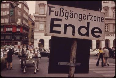 | Keywords: SIGN ANNOUNCES THE END OF KOHLMARKT STREET'S FUBGANGERZONE (PEDESTRIAN-ONLY ZONE). TO REDUCE TRAFFIC CONGESTION AND... - NARA - 549647.jpg Scope and content General notes 549647 Local identifier 412-DA-7162 Environmental Protection Agency 12/02/1970 - NARA-Author Okamoto Yoichi R Yoichi Robert 1915- Photographer 2987665 <br /> Vienna Wien Austria inhabited place 4183954 48 217 16 367 <br /> Still Picture Records Section Special Media Archives Services Division NWCS-S National Archives at College Park 8601 Adelphi Road College Park MD 20740-6001 1973-07 Record group Record Group 412 Records of the Environmental Protection Agency 1944 - 2006 Record group ARC 708 DOCUMERICA The Environmental Protection Agency's Program to Photographically Document Subjects of Environmental Concern compiled 1972 - 1977 Series ARC 542493 File unit File unit ARC Variant control numbers Agency-Assigned Identifier 120/22/007162<br /> NAIL Control Number NWDNS-412-DA-7162 Other versions <gallery> File SIGN_ANNOUNCES_THE_END_OF_KOHLMARKT_STREET'S_FUBGANGERZONE_ PEDESTRIAN-ONLY_ZONE _TO_REDUCE_TRAFFIC_CONGESTION_AND _-_NARA_-_549647 tif tif </gallery> NARA-cooperation PD-USGov 1973 in Vienna 1973 signs Pedestrian zones Graben Vienna Historic road signs in Austria DOCUMERICA photographs by Yoichi Okamoto |