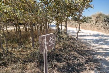Keywords: sign bike footer signpost way the path trail spacer tree green nature forest road