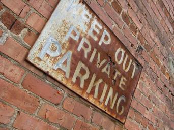 Keywords: sign keep out brick wall old rust
