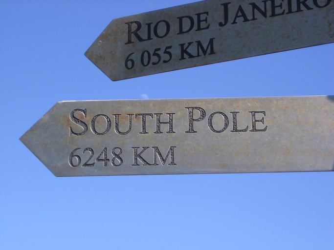 Keywords: sign south pole pointing south pole travel direction post geography navigation signpost journey