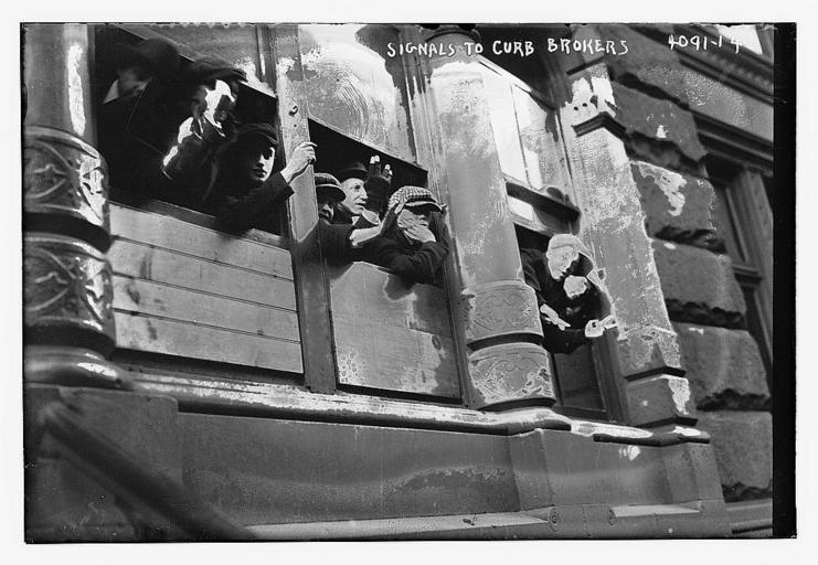 | Keywords: Signals to Curb Brokers (LOC) (15896915671).jpg Bain News Service publisher Signals to Curb Brokers between ca 1915 and ca 1920 1 negative glass ; 5 x 7 in or smaller Notes Title from unverified data provided by the Bain News Service on the negatives or caption cards Forms part of George Grantham Bain Collection Library of Congress Format Glass negatives Rights Info No known restrictions on publication Repository Library of Congress Prints and Photographs Division Washington D C 20540 USA http //hdl loc gov/loc pnp/pp print hdl loc gov/loc pnp/pp print General information about the Bain Collection is available at http //hdl loc gov/loc pnp/pp ggbain hdl loc gov/loc pnp/pp ggbain Higher resolution image is available Persistent URL http //hdl loc gov/loc pnp/ggbain 23493 hdl loc gov/loc pnp/ggbain 23493 Call Number LC-B2- 4091-14 https //www flickr com/photos/library_of_congress/15896915671/ Signals to Curb Brokers LOC LOC-image ggbain 23493 https //www flickr com/people/8623220 N02 The Library of Congress http //www loc gov/rr/print/195_copr html noknown The Library of Congress Flickr Commons PD-Bain The Library of Congress http //flickr com/photos/8623220 N02/15896915671 2015-02-15 03 44 56 pd |