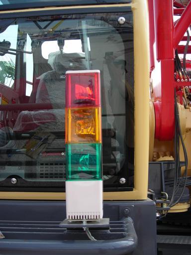 Keywords: Signalsäule an einer grossen selbstfahrenden Baumaschine (rot gelb grün).jpg warning lights seen on a building machine at bauma fair Munich<br> signal lamp tower with cheval glass lights on a hydraulic excavator Signalturm / Signalsäule mit Drehspiegelleuchten an einem Hydraulikbagger zur visuellen Statusanzeige own 2007-04-29 User Mattes Warning signs Signalling lamps Bauma 2007 Taken with Nikon Coolpix L2 Work by Mattes 2007 Green red white yellow User Mattes/Contributions/Topics/Technology |