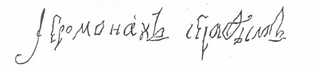 Keywords: Signature Seraphim of Sarov.jpg ru Снимок поче ка Се афима Са овского 2013-12-07 16 06 28 скан из книги «Житие Се афима са овского чудотво ца» 1903 Се афим Са овский Custom license marker 2013 12 07 PD-old Uploaded with UploadWizard Signatures of people from Russia Seraphim of Sarov |
