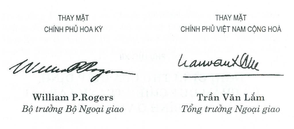| Keywords: Signes of Roges and TVLam.jpg vi Chữ ký của Bộ trưởng Ngoại giao Hoa Kỳ William P Rogers và Bộ trưởng ngoại giao Việt Nam Cộng hòa Trần Văn Lắm tại Hiệp định Paris 1973 về Việt Nam Paris Peace Accords 1973 William P Rogeres and Tran Van Lam 1973-01-27 PD-USGov PD-USGov Vietnam War Draft |