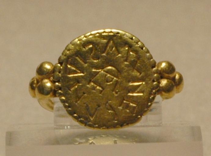 | Keywords: Signet ring Louvre MAN87432.jpg Signet ring bearing a monogram interpreted as REGINE ARNEGUNDIS Queen Aregund Gold Merovingian Gaul ca 570 From the finery of Aregund wife of Clotaire I 511 “561 Found in 1959 in a tomb in Saint-Denis France Bague sigillaire portant un monogramme interprĂ©tĂ© comme « REGINE ARNEGUNDIS » Reine Arnegonde Or Gaule mĂ©rvingienne vers 570 Provient de la parure d'Arnegonde femme de Clotaire Ier 511-561 DĂ©couvert en 1959 dans une tombe Ă Saint-Denis Museum Louvre Department of Decorative Arts Richelieu first floor room 1 object history credit line On deposit from the French Museum of Monuments DĂ©pĂ´t du MusĂ©e des monuments français accession number MAN 87432 Jastrow 2005 other versions <gallery> Image Belt Arnegund MAN87431 jpg Aregund's finery set belt Image Fibulae Aregund MAN87424 jpg Aregund's finery set fibulae </gallery> Decorative arts in the Louvre - Room 1 Merovingian jewellery Signet rings Louvre images of low quality ArĂ©gonde Jewellery in the Louvre |