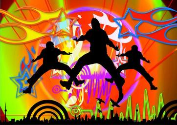 Keywords: silhouette man boy movement jump dance light party disco nightclub celebrate dancers human lust for life joy of life blue club night club dance bar dance club music fun mood dance floor
