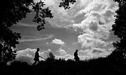 Keywords: silhouette people silhouettes sky clouds trees embankment backlighting gothic bw black-and-white photography monochrome