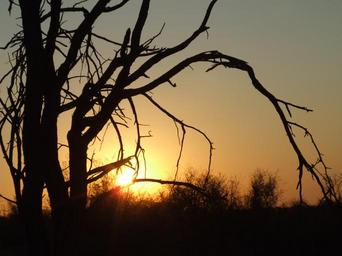 Keywords: silhouette sunset tree dead nature reserve branches bush veld