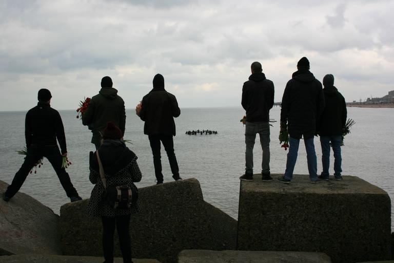 Keywords: silhouettes people scheveningen flowers memorial beach pier surfing surfers