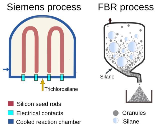 Keywords: Silicon purification processes.svg Silicon purification processes Schematic diagram of the conventional Siemens process and the alternative Fluidized bed reactor FBR process own http //www thequartzcorp com/en/blog/2014/04/28/polysilicon-production/61 TheQuartzCorp website http //www recsilicon com/technology/rec-silicons-fluidized-bed-reactor-process/ RECSilicon website based on http //www recsilicon com/RECSilicon/media/RECSilicon/Image 20Gallery/Products/seimens_fbr_illustration gif image 2014-10-23 Valid SVG none <br> inkscape margin 10px 2px; Rfassbind Fluidized bed Silicon diagrams |