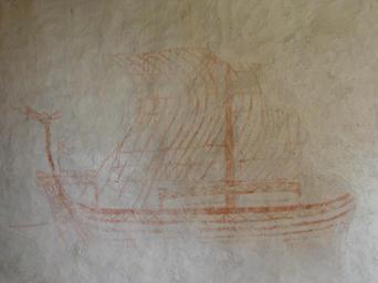 Keywords: Siljan Kirke (skib2).JPG Kalkmaleri af skib fra Siljan Kirke Telemark own 2012-08 Orf3us Siljan kirke Frescos in churches in Norway PD-old-100