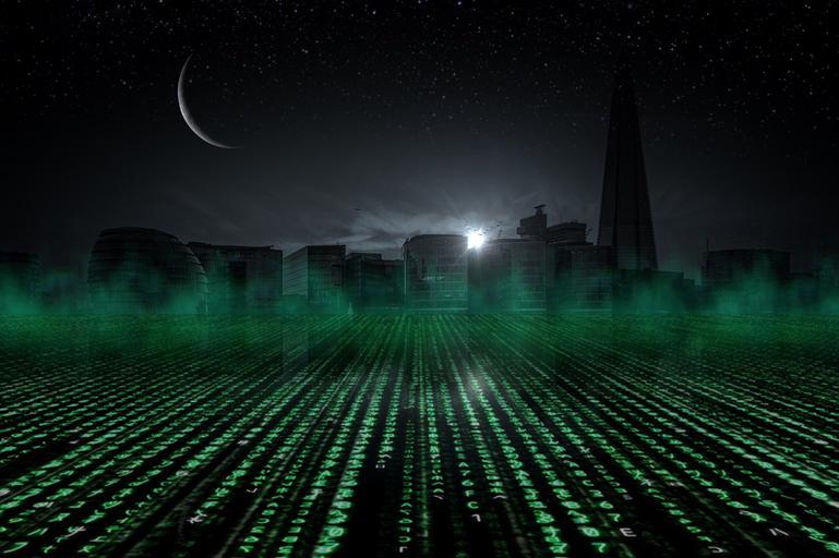 Keywords: sillouette state urban skyscraper panorama skyline city river abendstimmung manhattan america matrix space moon sky star sun night green binary