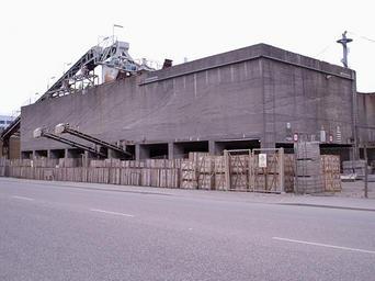 Keywords: Silo 27 types.JPG This silo contains 27 variations of sand and gravel Picture from Copenhagen september 14 2005 camera date not correct 2003-01-01 own assumed G®iffen~commonswiki PD by G®iffen Grey buildings Concrete Silos in Denmark Port of Copenhagen