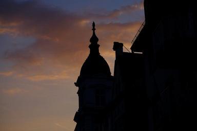 Keywords: silouette home building facade city afterglow sunset architecture abendstimmung dusk evening sky lighting evening housewife twilight