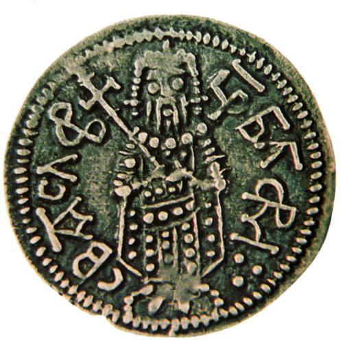 | Keywords: Silver coin of Theodore Svetoslav.png en Silver coin of Theodore Svetoslav 1300-1322 bg С ебъ на монета на ца Тодо Светослав 1300-1322 Исто ия на Бълга ия Том ІІІ Вто а бълга ска дъ жава издателство на БА София 1982 author century 14 PD-old Coins of Bulgaria Theodore Svetoslav of Bulgaria |