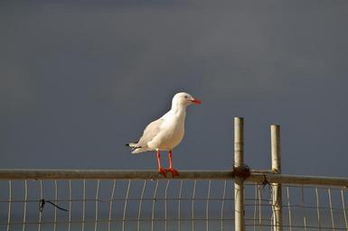 Keywords: silver gull seabird perched white red feet fence sky wild queensland australia seagull gull bird
