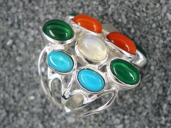 Keywords: silver jewelry jewellery ring gems shimmer silver orange green turquoise moonstone noble chic striking trend