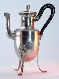 | Keywords: Silver. Kaffekanna- Coffee pot - Hallwylska museet - 82133.tif Invändigt förgylld Äggformad med upptill indraget liv på tre ben med tassfötter och palmettbeslag bladbård fyra pålagda rosetter och pärlstav; lock med godronnering och ollonformad knopp samt pip avslutad av ett hundhuvud Skaft av svärtad björk - - Gilt interior Oviform body incurved at the top on three legs with paw feet and palmette mounts foliated border four applied rosettes with beading gadrooned lid with acorn-shaped finial spout with a dogs terminal Handle of black -stained birch <br/><br/>Gåva till Wilhelmina von Hallwyl julaftonen 1899 från hennes dotter Ebba von Eckermann och kammarherren Wilhelm von Eckermann original caption Silver Kaffekanna/ Coffee pot XLII I F a 04 1823 size cm 21 8 HWY place of origin Stockholm SE original filename hm_t09246 16424 inventory number HWY XLII I F a 04 82133 CC-BY-SA <gallery caption Different images of same object > File Silver Kaffekanna- Coffee pot - Hallwylska museet - 5087 tif </gallery> Silver in the Hallwyl museum Media contributed by LSH unmatched creator Media contributed by LSH 2013-10 |