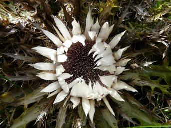 Keywords: silver thistle carlina acaulis thistle blossom bloom plant spiny prickly flora