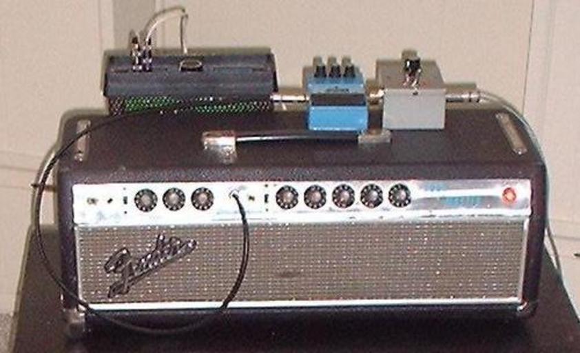 Keywords: Silverface Bandmaster Head with effects pedals.JPG en Silverface Fender Bandmaster drip-edge style 1968 with AB763 circuit own Glamafez 2011-09-02 Cc-zero Fender amps Tube amplifiers