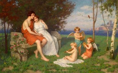 | Keywords: Simon Glücklich The Lovers.jpg Artwork Creator Simon Glücklich turn of the century 20 oil canvas cm 76 121 accession number object history sold at Palais Dorotheum 12 10 2010 lot 63 credit line exhibition history http //iamachild wordpress com/2012/03/19/simon-glucklich-1863-1943-polish-born-german/ PD-old-auto-1923 1943 Simon Glücklich Couples in art Music-making angels |